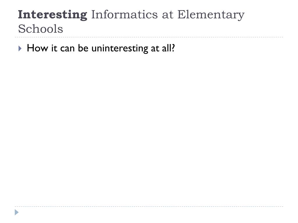 Interesting Informatics at Elementary Schools • How it can be uninteresting at all?