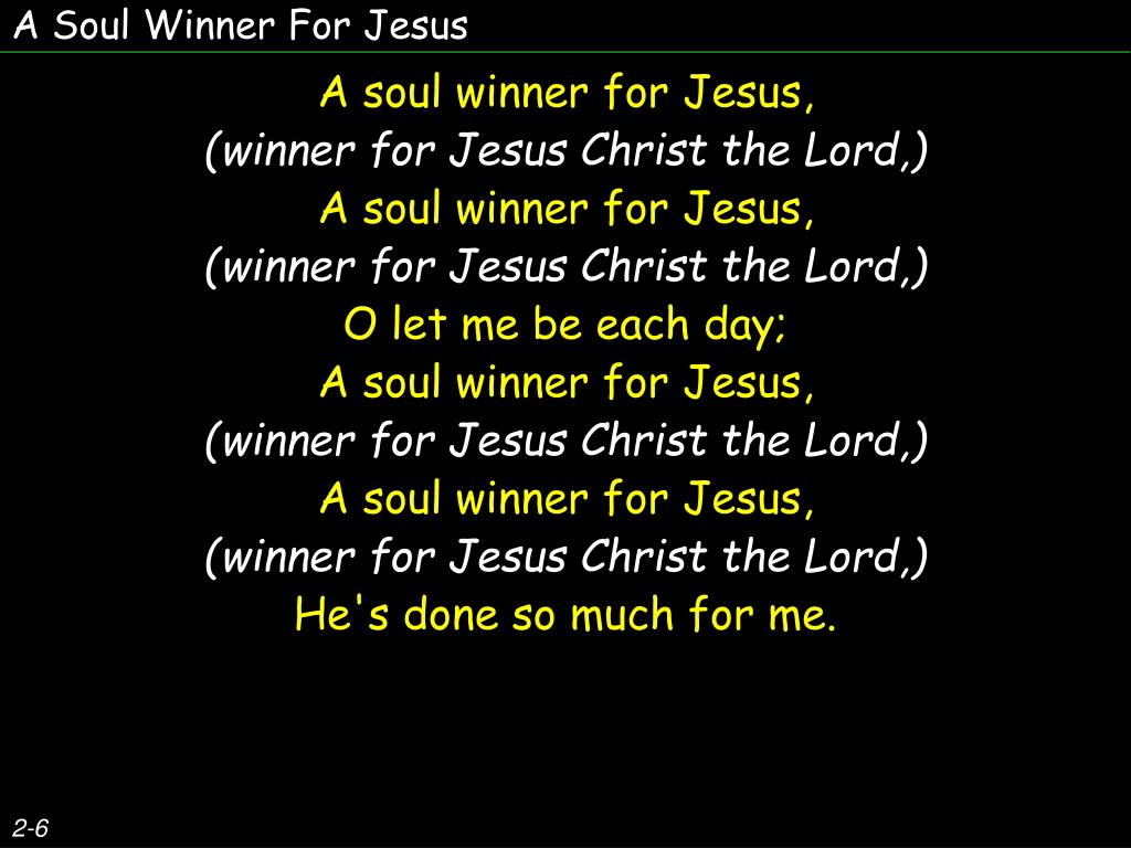 A Soul Winner For Jesus A soul winner for Jesus, (winner for Jesus Christ the Lord,) A soul winner for Jesus, (winner for Jesus Christ the Lord,) O let me be each day; A soul winner for Jesus, (winner for Jesus Christ the Lord,) A soul winner for Jesus, (winner for Jesus Christ the Lord,) He's done so much for me. 2-6