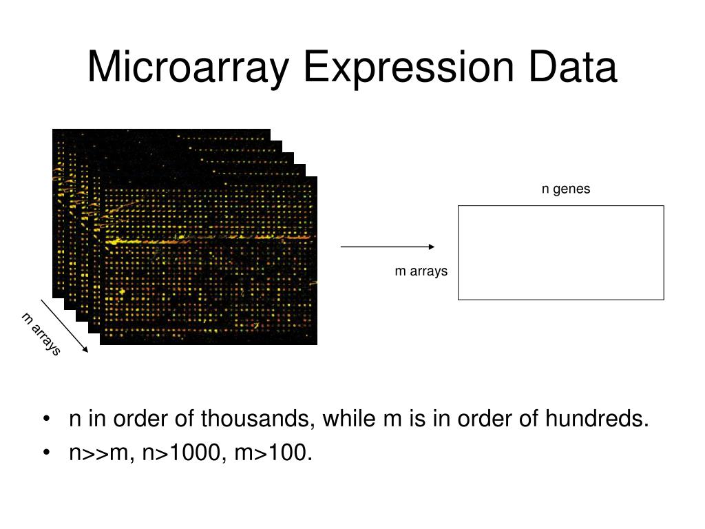 Microarray Expression Data n genes m arrays m arrays • n in order of thousands, while m is in order of hundreds. • n>>m, n>1000, m>100.