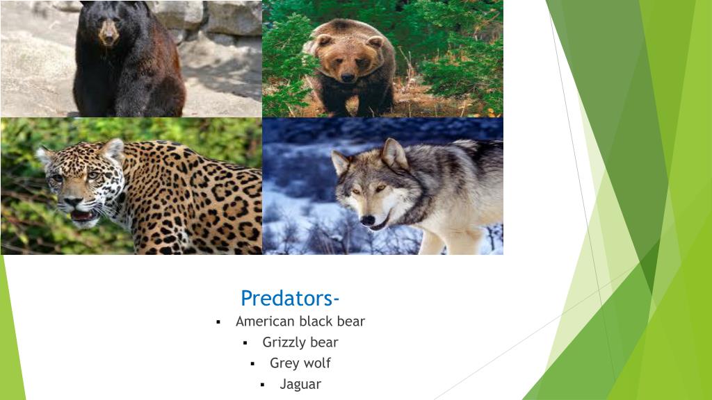 Predators- American black bear Grizzly bear Grey wolf Jaguar
