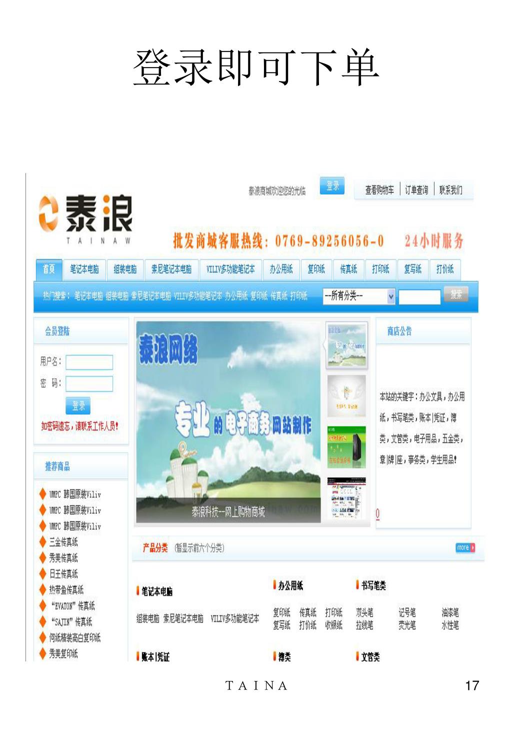 1. 泰浪CTW文具行业系列软件功能表 • CTW文具行业批发版 • 适用于文具行业批发或区域代理批发;并可以网上下订单等; TAINA