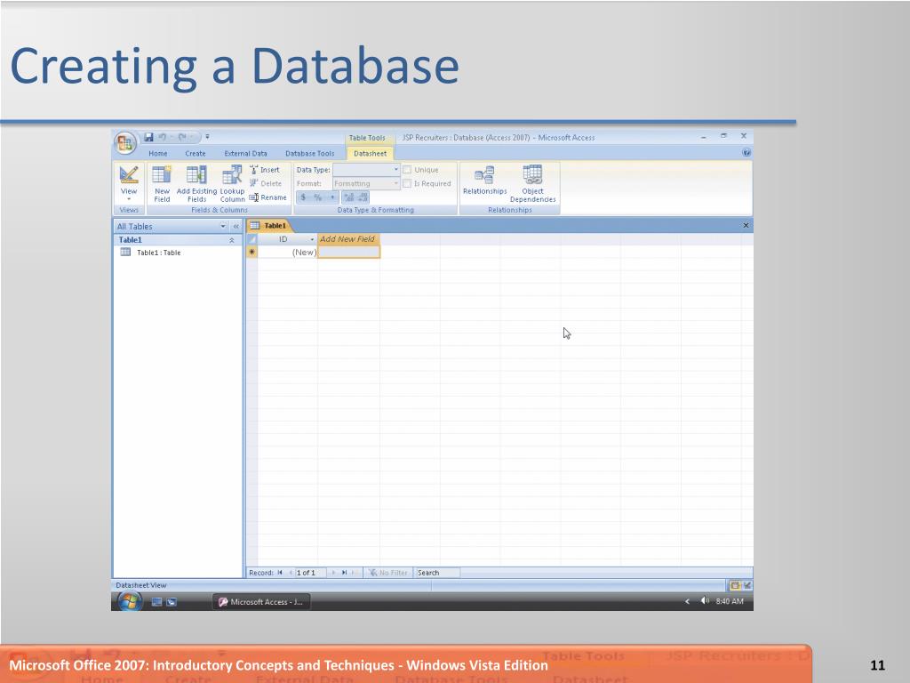 Creating a Database Microsoft Office 2007: Introductory Concepts and Techniques - Windows Vista Edition