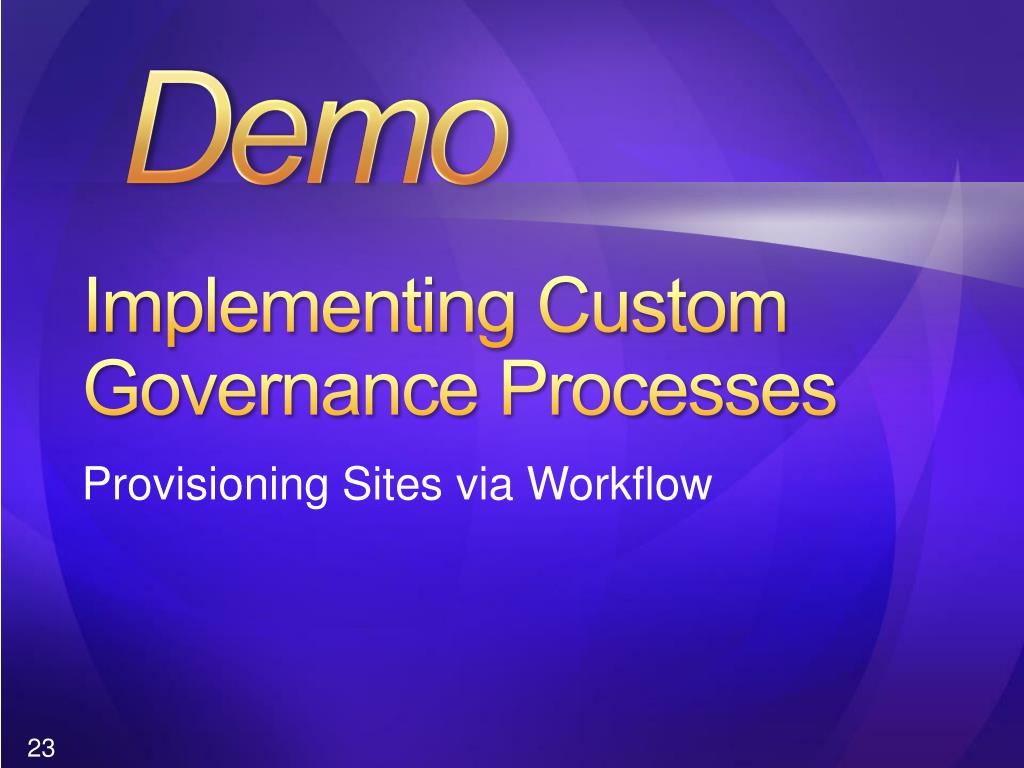 Demo Implementing Custom Governance Processes Provisioning Sites via Workflow 23