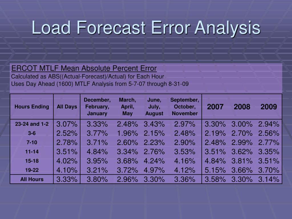Net Load Error • ERCOT to look at same month of previous year to determine A/S quantities. • Default Load Forecast has been changed by ERCOT Support to the historically most accurate. • Load over forecast in the summer months is typically due to rain and overcast conditions in parts of the state.