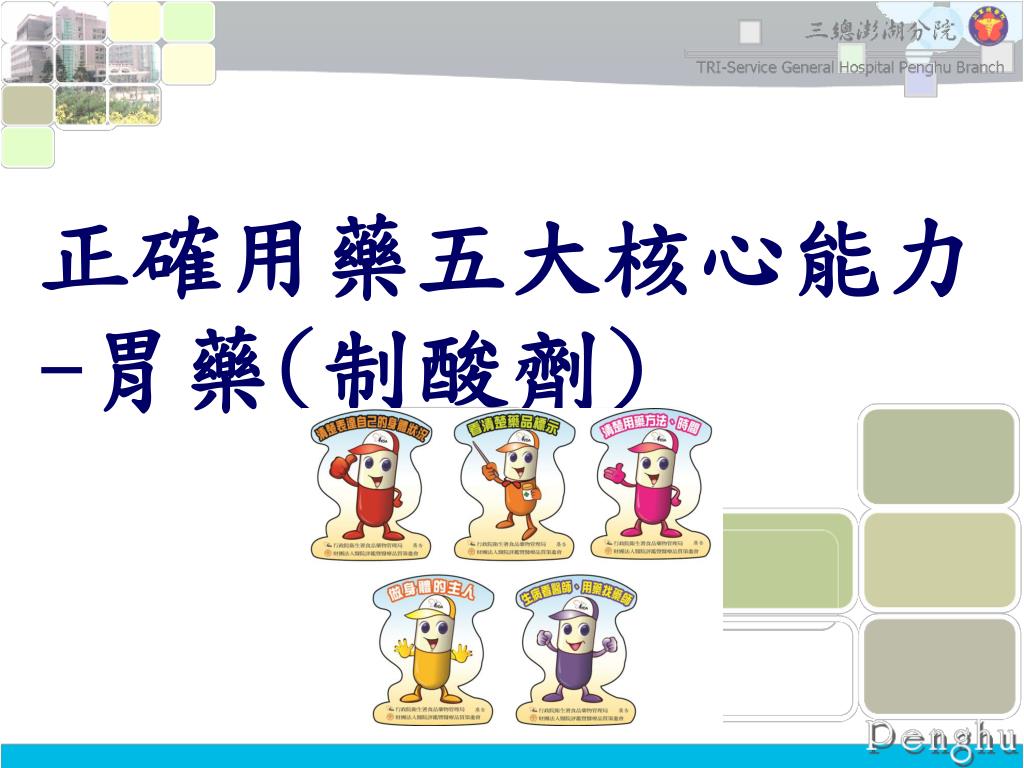 103年度在地化教材-三軍總醫院澎湖分院正確用藥五大核心能力及胃藥 (制酸劑)簡介 講師:吳文冬藥師 1