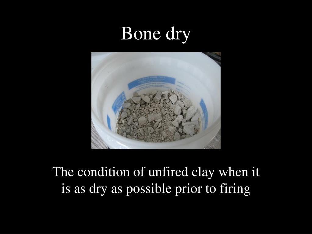 Bone dry The condition of unfired clay when it is as dry as possible prior to firing