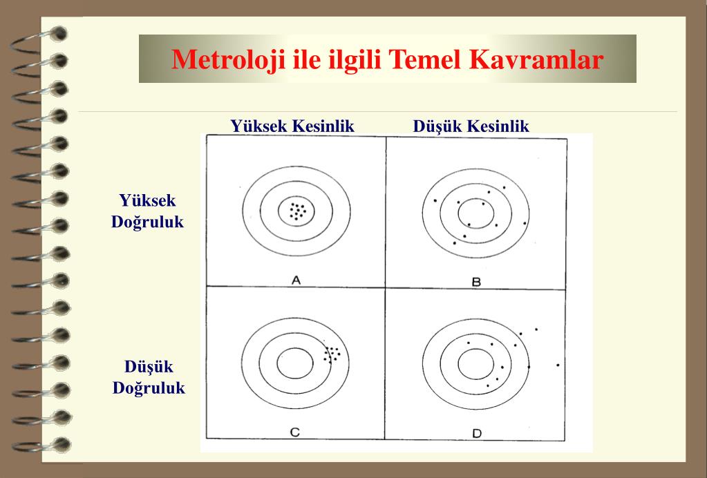 Metroloji ile ilgili Temel Kavramlar Yüksek Kesinlik Düşük Kesinlik Yüksek Doğruluk Düşük Doğruluk