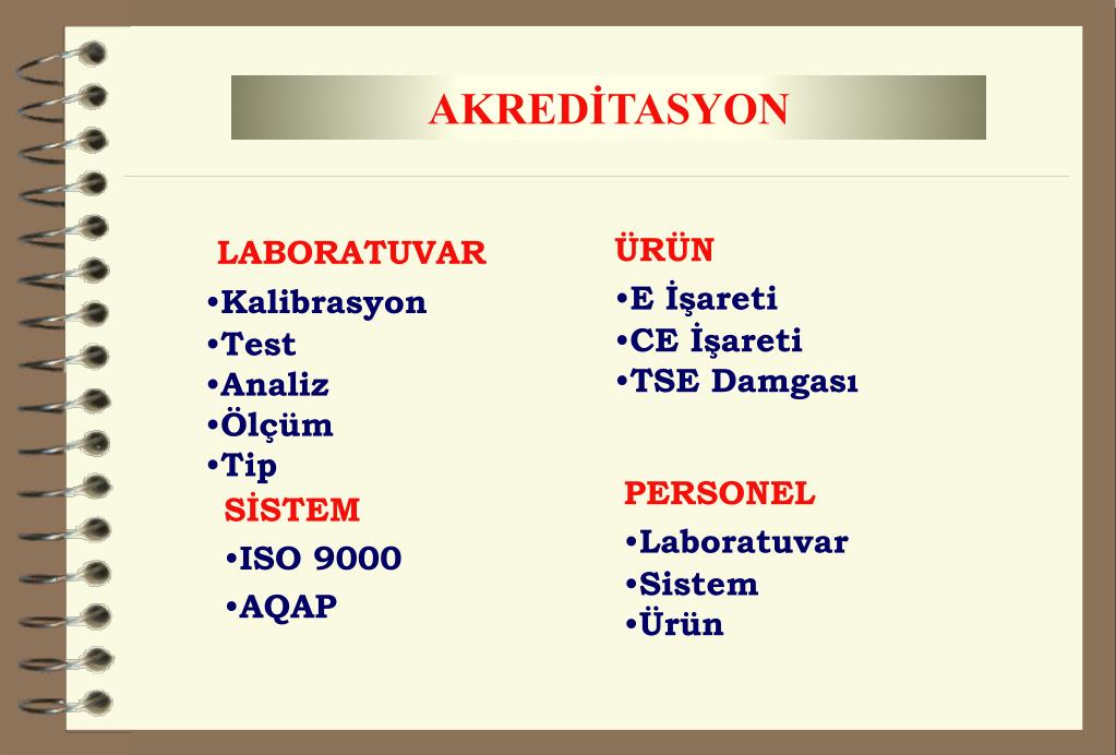 AKREDİTASYON • LABORATUVAR • Kalibrasyon • Test • Analiz • Ölçüm • Tip • ÜRÜN • E İşareti • CE İşareti • TSE Damgası • PERSONEL • Laboratuvar • Sistem • Ürün • SİSTEM • ISO 9000 • AQAP