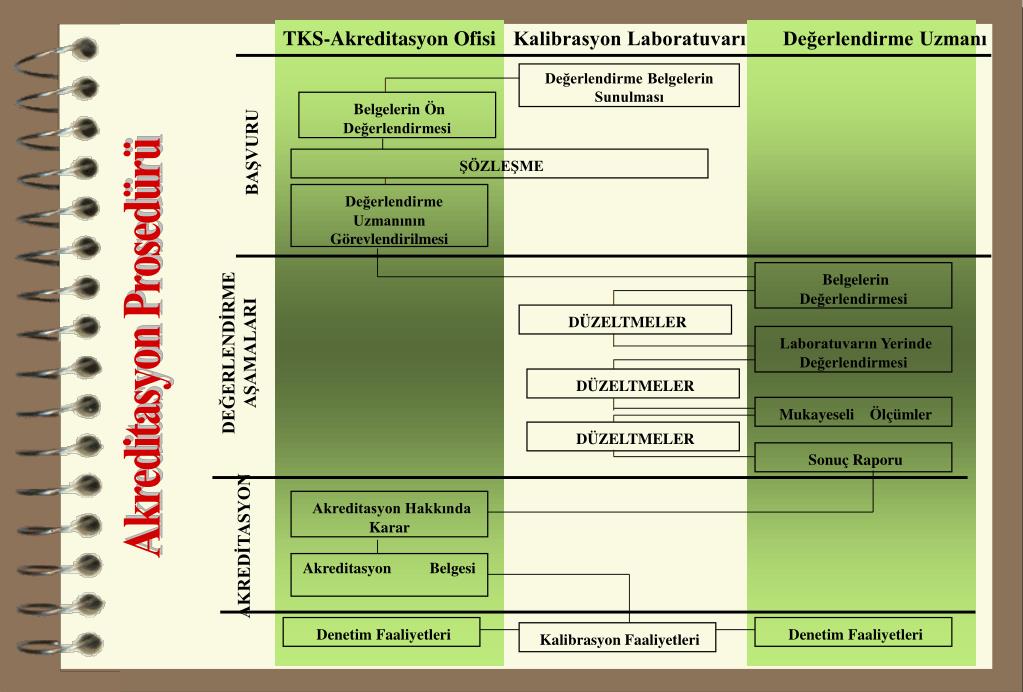 TKS-Akreditasyon Ofisi Kalibrasyon Laboratuvarı Değerlendirme Uzmanı Değerlendirme Belgelerin Sunulması Belgelerin Ön Değerlendirmesi BAŞVURU ŞÖZLEŞME Değerlendirme Uzmanının Görevlendirilmesi Belgelerin Değerlendirmesi DÜZELTMELER Akreditasyon Prosedürü DEĞERLENDİRME AŞAMALARI Laboratuvarın Yerinde Değerlendirmesi DÜZELTMELER Mukayeseli Ölçümler DÜZELTMELER Sonuç Raporu Akreditasyon Hakkında Karar AKREDİTASYON Akreditasyon Belgesi Denetim Faaliyetleri Denetim Faaliyetleri Kalibrasyon Faaliyetleri