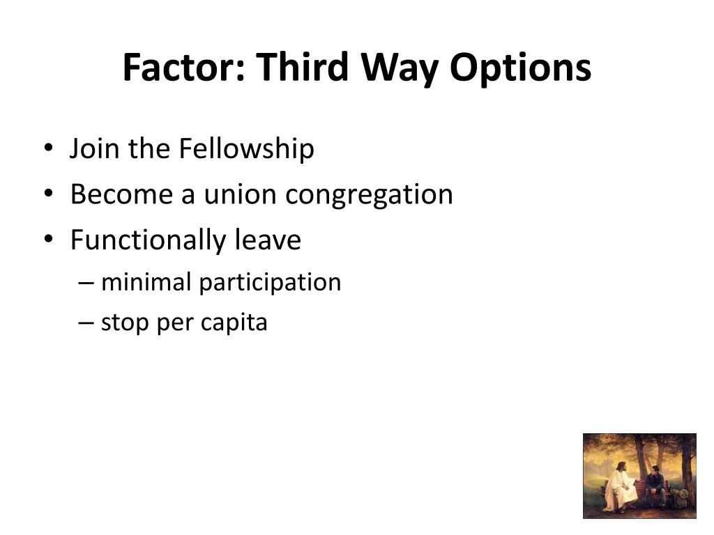 Factor: Third Way Options • Join the Fellowship • Become a union congregation • Functionally leave • minimal participation • stop per capita