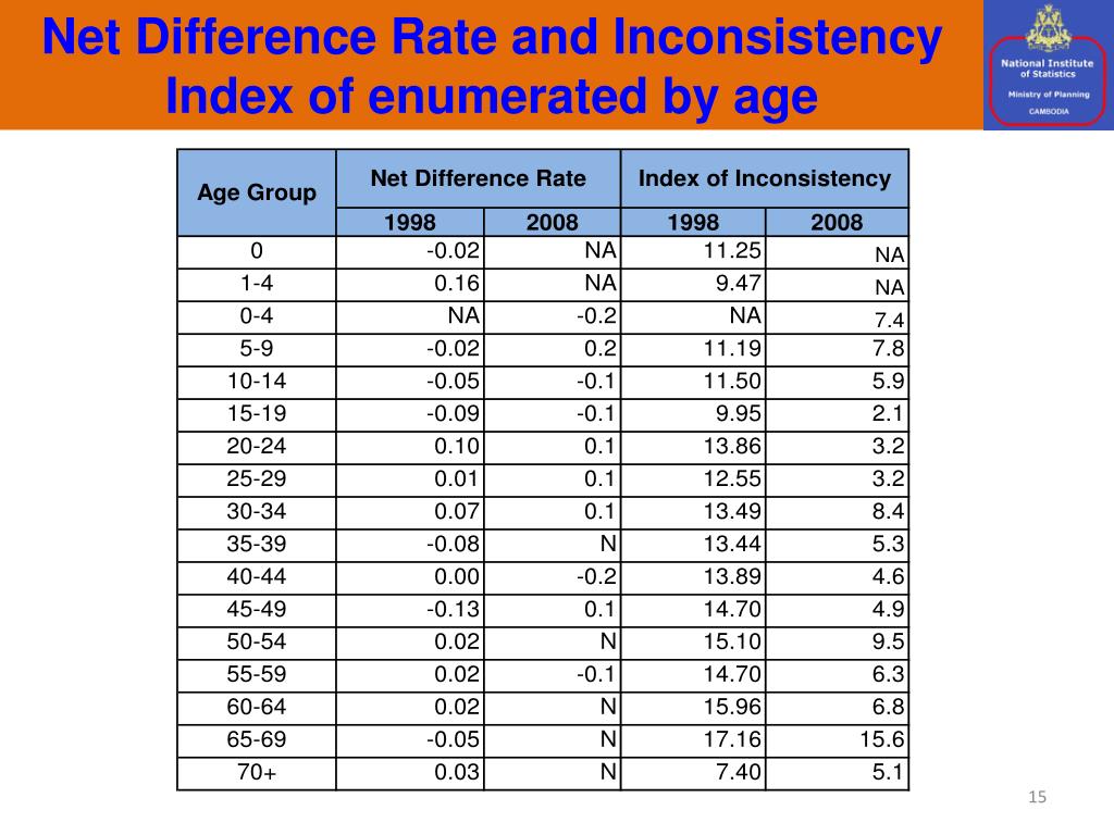 Net Difference Rate and Inconsistency Index of enumerated by age