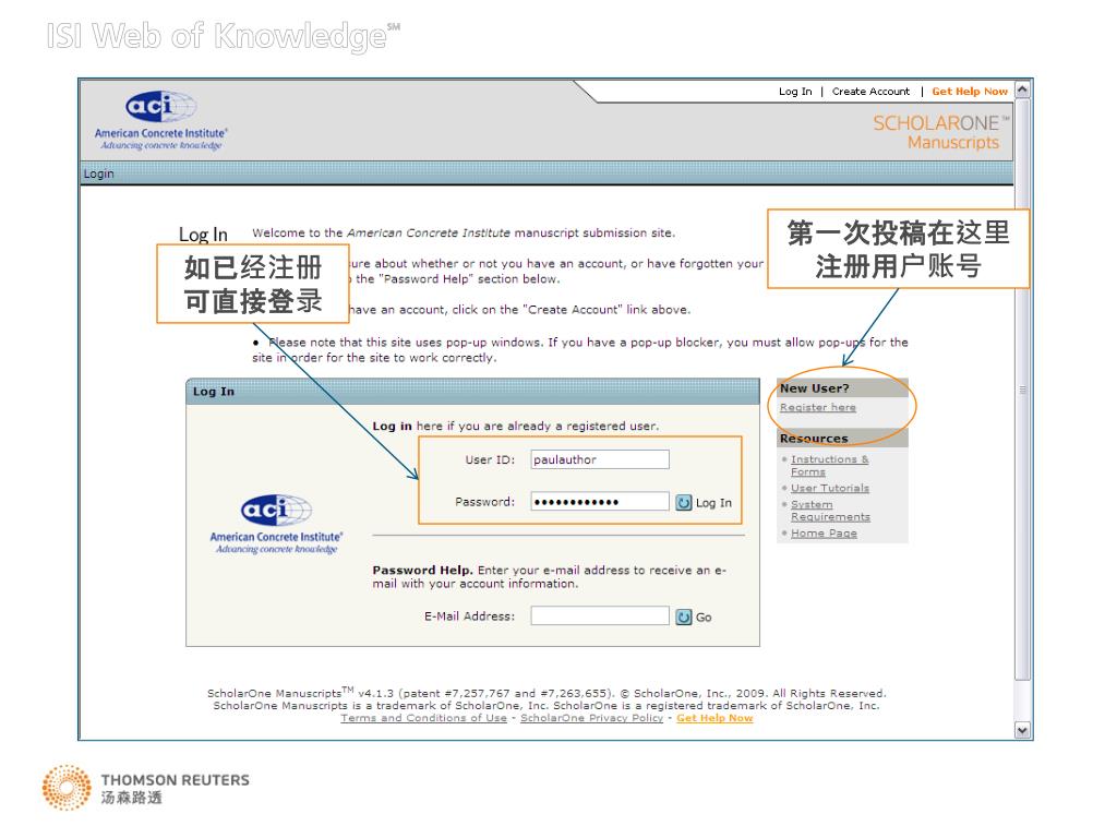 第一次投稿在这里注册用户账号 如已经注册 可直接登录