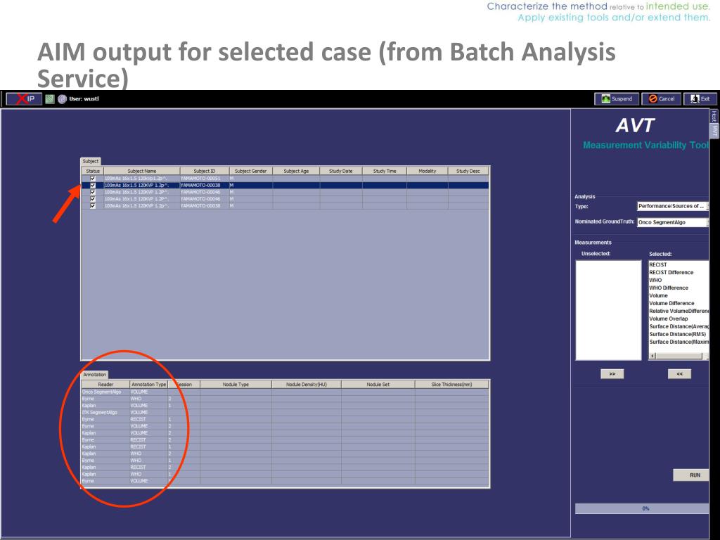 Output of Analysis Type run (this example inter-reader) Inter-reader measurements