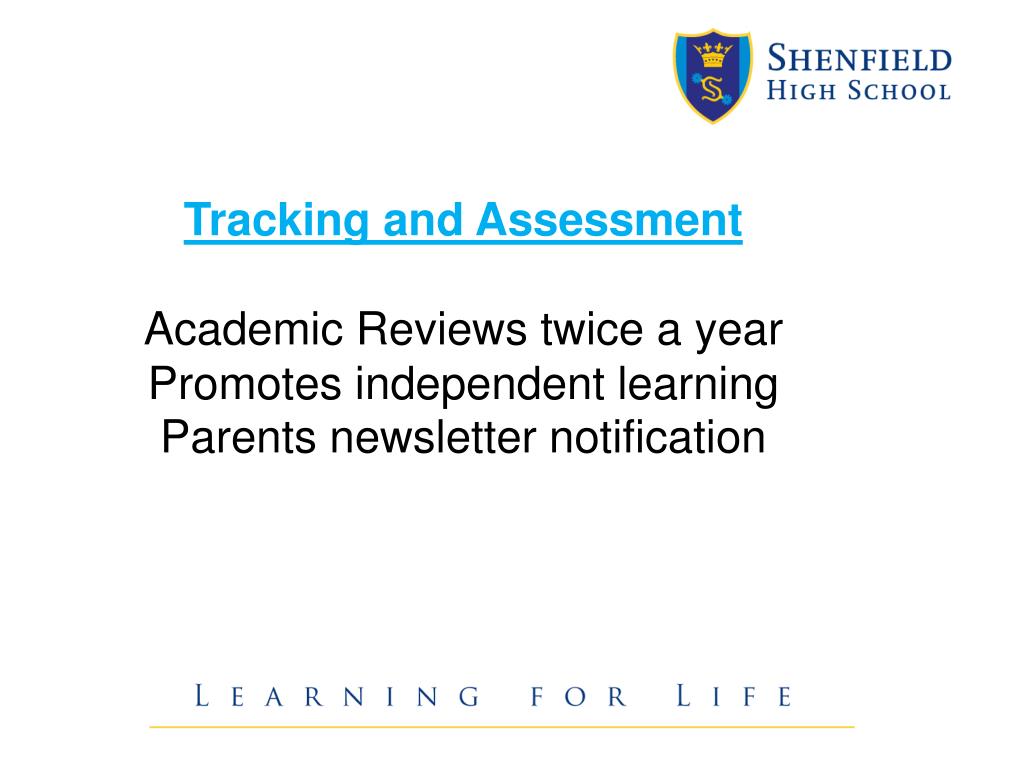 Tracking and AssessmentAcademic Reviews twice a yearPromotes independent learningParents newsletter notification