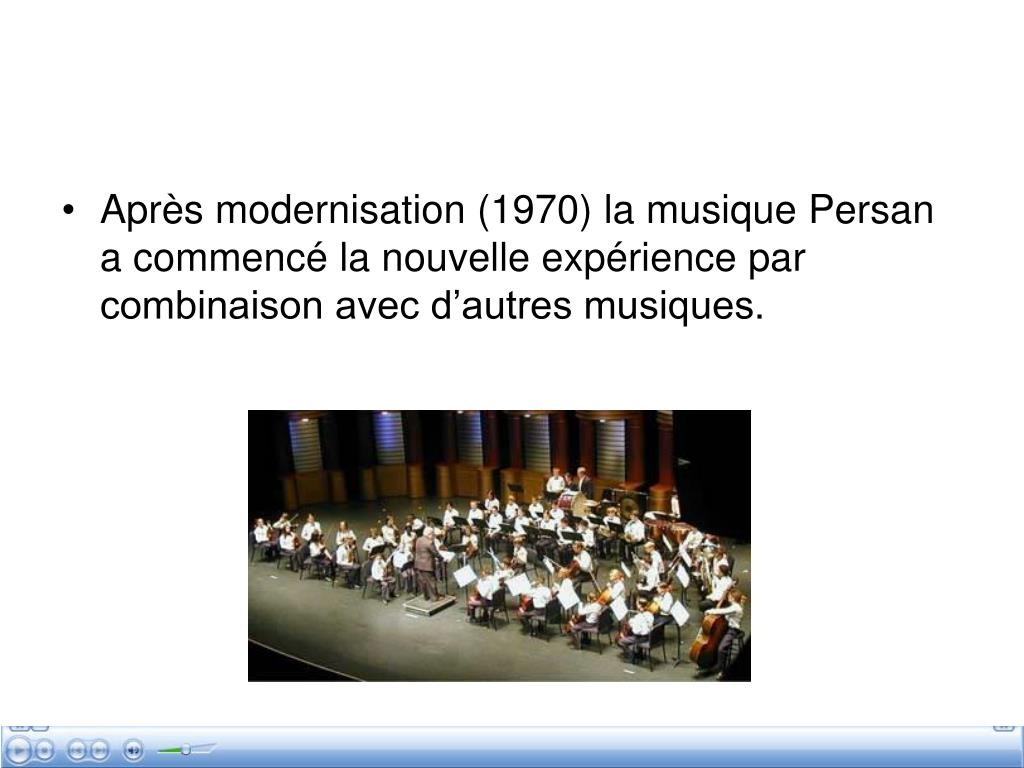 Après modernisation (1970) la musique Persan a commencé la nouvelle expérience par combinaison avec d’autres musiques.