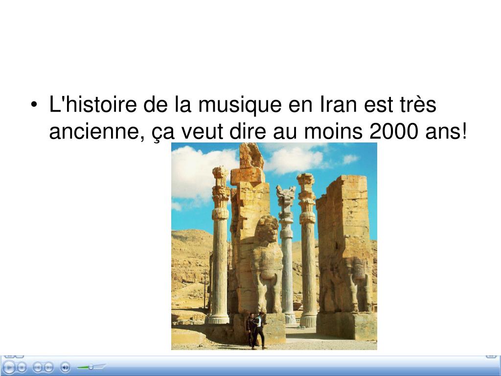 L'histoire de la musique en Iran est très ancienne, ça veut dire au moins 2000 ans!