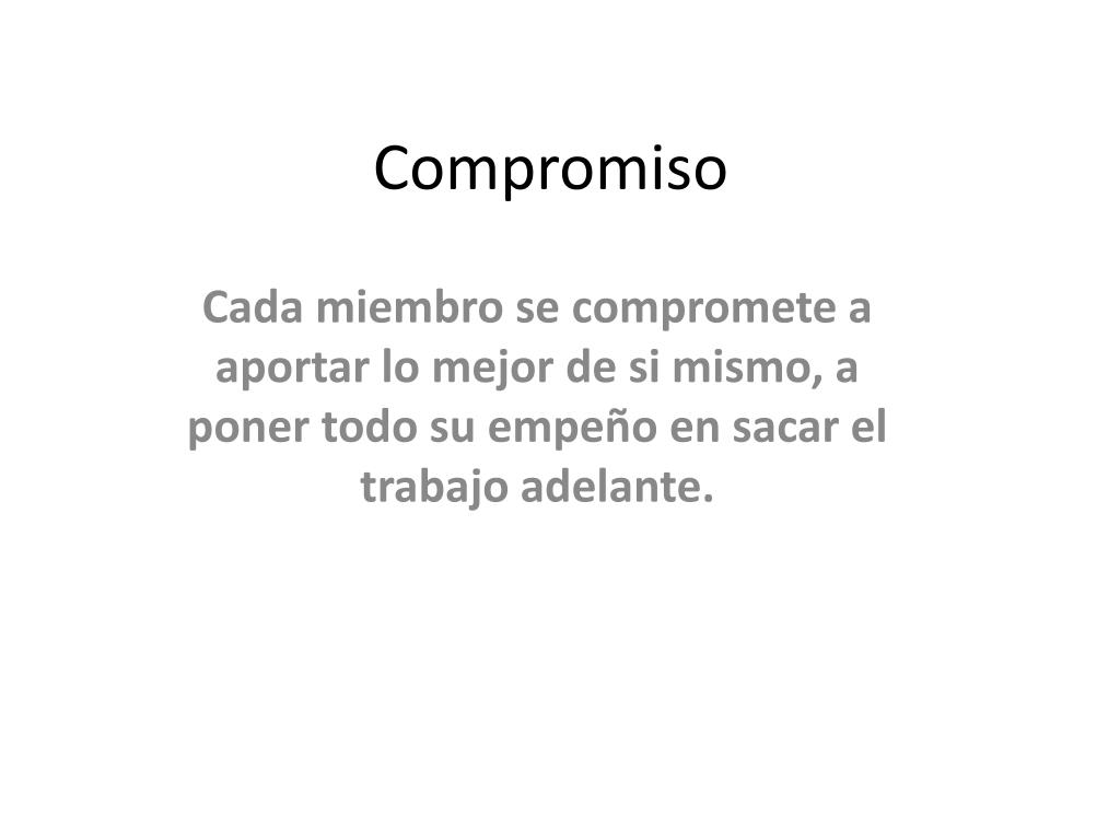 Compromiso Cada miembro se compromete a aportar lo mejor de si mismo, a poner todo su empeño en sacar el trabajo adelante.