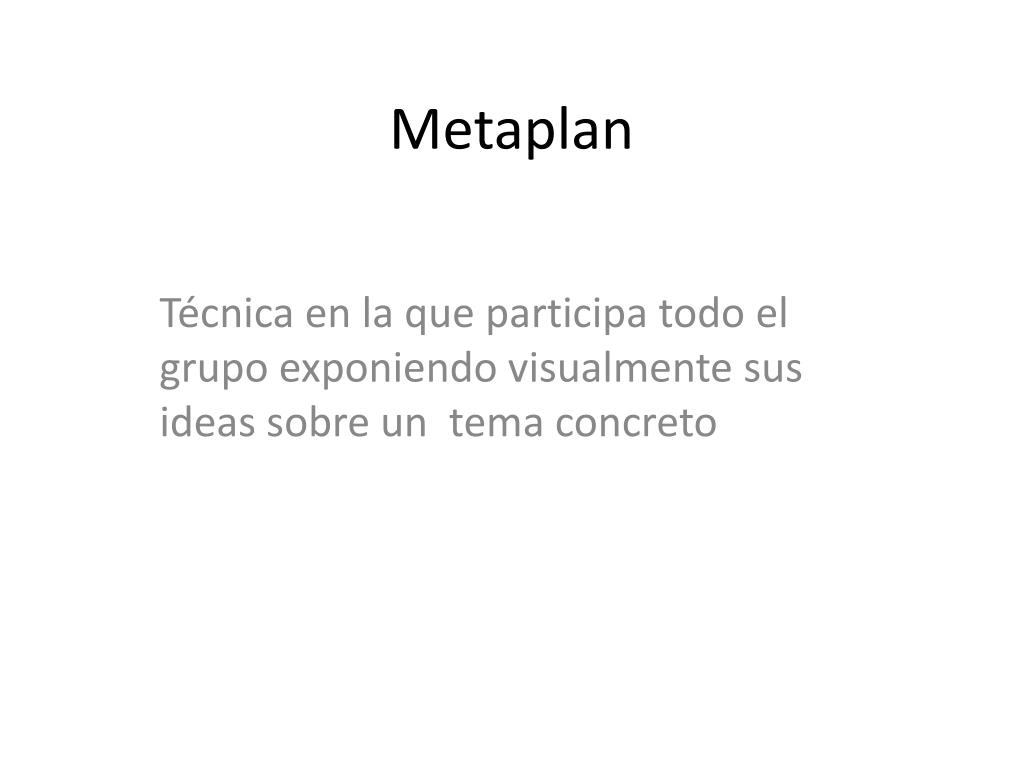 Metaplan Técnica en la que participa todo el grupo exponiendo visualmente sus ideas sobre un tema concreto