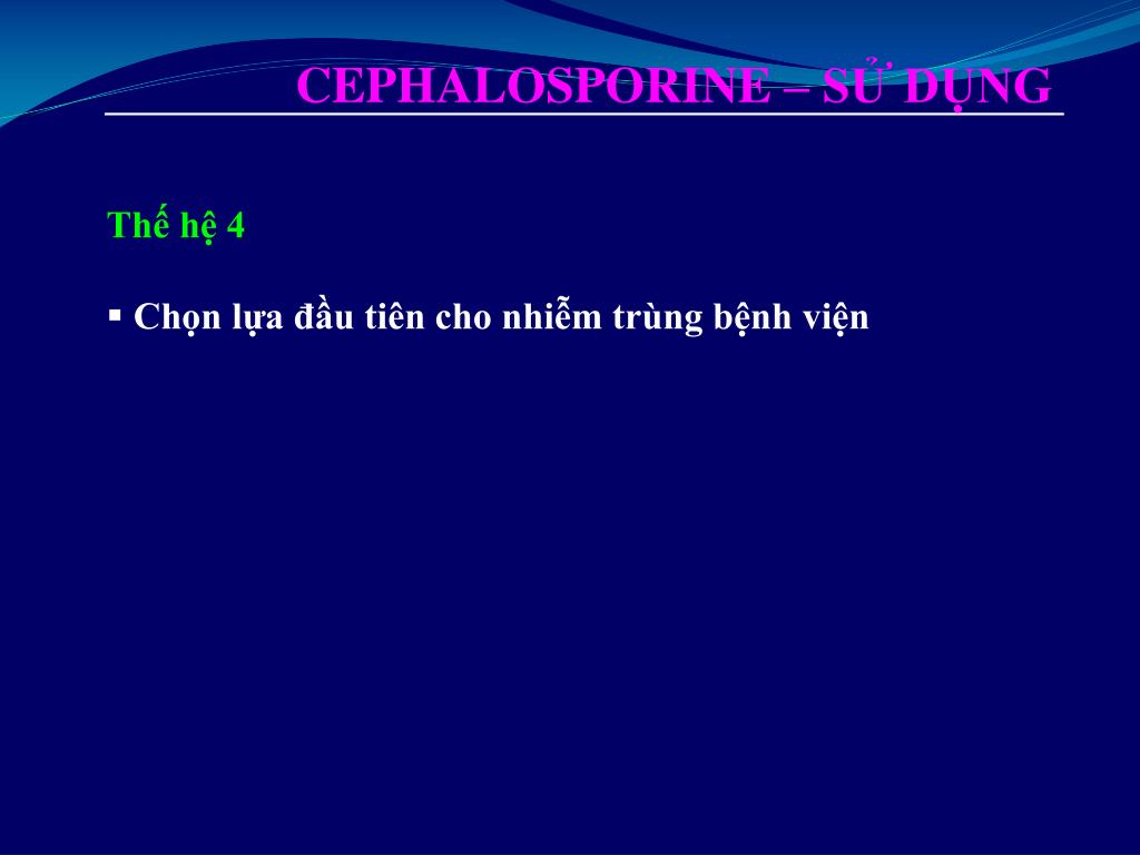 CEPHALOSPORINE – SỬ DỤNG • Thế hệ 4 • Chọn lựa đầu tiên cho nhiễm trùng bệnh viện