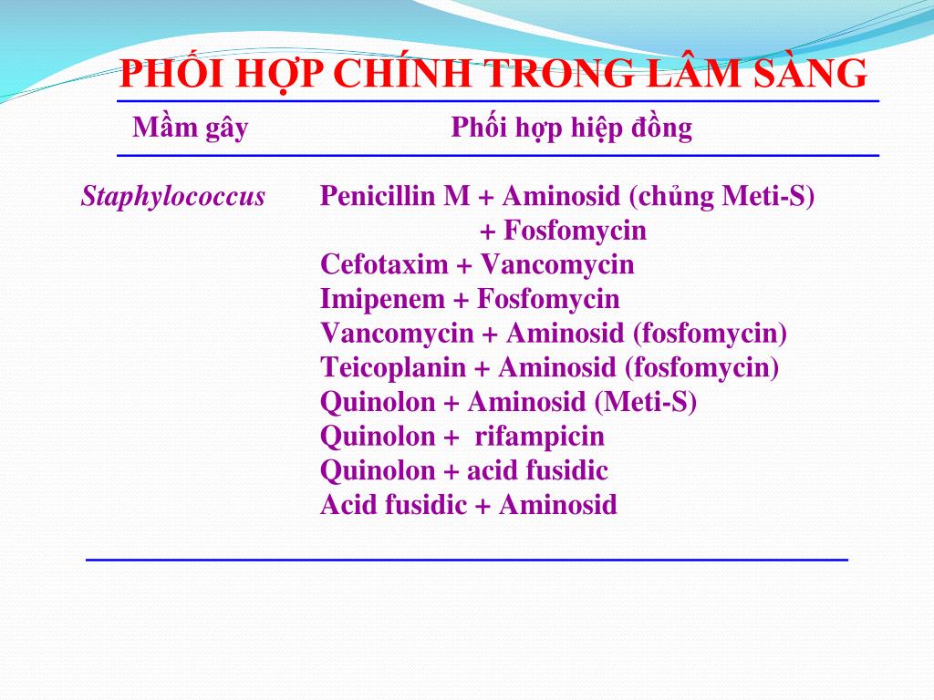PHỐI HỢP CHÍNH TRONG LÂM SÀNG Mầm vi khuẩn Phối hợp hiệp đồng