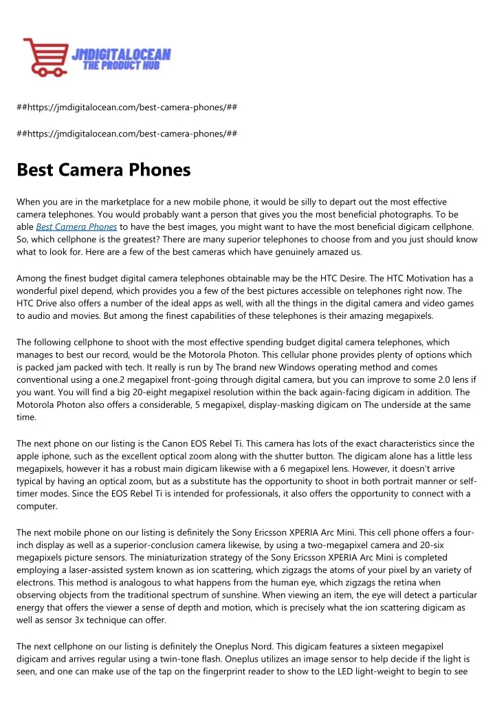 ##https://jmdigitalocean.com/best-camera-phones/## ##https://jmdigitalocean.com/best-camera-phones/## Best Camera Phones When you are in the marketplace for a new mobile phone, it would be silly to depart out the most effective camera telephones. You would probably want a person that gives you the most beneficial photographs. To be able Best Camera Phones to have the best images, you might want to have the most beneficial digicam cellphone. So, which cellphone is the greatest? There are many superior telephones to choose from and you just should know what to look for. Here are a few of the best cameras which have genuinely amazed us. Among the finest budget digital camera telephones obtainable may be the HTC Desire. The HTC Motivation has a wonderful pixel depend, which provides you a few of the best pictures accessible on telephones right now. The HTC Drive also offers a number of the ideal apps as well, with all the things in the digital camera and video games to audio and movies. But among the finest capabilities of these telephones is their amazing megapixels. The following cellphone to shoot with the most effective spending budget digital camera telephones, which manages to best our record, would be the Motorola Photon. This cellular phone provides plenty of options which is packed jam packed with tech. It really is run by The brand new Windows operating method and comes conventional using a one.2 megapixel front-going through digital camera, but you can improve to some 2.0 lens if you want. You will find a big 20-eight megapixel resolution within the back again-facing digicam in addition. The Motorola Photon also offers a considerable, 5 megapixel, display-masking digicam on The underside at the same time. The next phone on our listing is the Canon EOS Rebel Ti. This camera has lots of the exact characteristics since the apple iphone, such as the excellent optical zoom along with the shutter button. The digicam alone has a little less megapixels, however it has a robust main digicam likewise with a 6 megapixel lens. However, it doesn't arrive typical by having an optical zoom, but as a substitute has the opportunity to shoot in both portrait manner or self- timer modes. Since the EOS Rebel Ti is intended for professionals, it also offers the opportunity to connect with a computer. The next mobile phone on our listing is definitely the Sony Ericsson XPERIA Arc Mini. This cell phone offers a four- inch display as well as a superior-conclusion camera likewise, by using a two-megapixel camera and 20-six megapixels picture sensors. The miniaturization strategy of the Sony Ericsson XPERIA Arc Mini is completed employing a laser-assisted system known as ion scattering, which zigzags the atoms of your pixel by an variety of electrons. This method is analogous to what happens from the human eye, which zigzags the retina when observing objects from the traditional spectrum of sunshine. When viewing an item, the eye will detect a particular energy that offers the viewer a sense of depth and motion, which is precisely what the ion scattering digicam as well as sensor 3x technique can offer. The next cellphone on our listing is definitely the Oneplus Nord. This digicam features a sixteen megapixel digicam and arrives regular using a twin-tone flash. Oneplus utilizes an image sensor to help decide if the light is seen, and one can make use of the tap on the fingerprint reader to show to the LED light-weight to begin to see