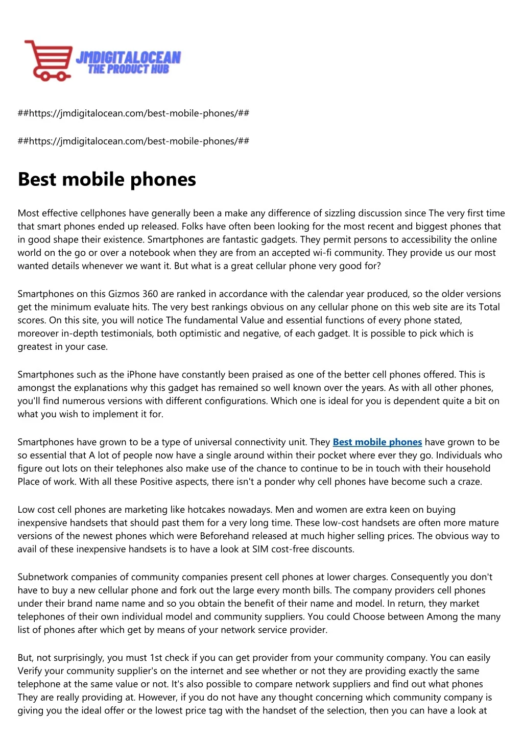 ##https://jmdigitalocean.com/best-mobile-phones/## ##https://jmdigitalocean.com/best-mobile-phones/## Best mobile phones Most effective cellphones have generally been a make any difference of sizzling discussion since The very first time that smart phones ended up released. Folks have often been looking for the most recent and biggest phones that in good shape their existence. Smartphones are fantastic gadgets. They permit persons to accessibility the online world on the go or over a notebook when they are from an accepted wi-fi community. They provide us our most wanted details whenever we want it. But what is a great cellular phone very good for? Smartphones on this Gizmos 360 are ranked in accordance with the calendar year produced, so the older versions get the minimum evaluate hits. The very best rankings obvious on any cellular phone on this web site are its Total scores. On this site, you will notice The fundamental Value and essential functions of every phone stated, moreover in-depth testimonials, both optimistic and negative, of each gadget. It is possible to pick which is greatest in your case. Smartphones such as the iPhone have constantly been praised as one of the better cell phones offered. This is amongst the explanations why this gadget has remained so well known over the years. As with all other phones, you'll find numerous versions with different configurations. Which one is ideal for you is dependent quite a bit on what you wish to implement it for. Smartphones have grown to be a type of universal connectivity unit. They Best mobile phones have grown to be so essential that A lot of people now have a single around within their pocket where ever they go. Individuals who figure out lots on their telephones also make use of the chance to continue to be in touch with their household Place of work. With all these Positive aspects, there isn't a ponder why cell phones have become such a craze. Low cost cell phones are marketing like hotcakes nowadays. Men and women are extra keen on buying inexpensive handsets that should past them for a very long time. These low-cost handsets are often more mature versions of the newest phones which were Beforehand released at much higher selling prices. The obvious way to avail of these inexpensive handsets is to have a look at SIM cost-free discounts. Subnetwork companies of community companies present cell phones at lower charges. Consequently you don't have to buy a new cellular phone and fork out the large every month bills. The company providers cell phones under their brand name name and so you obtain the benefit of their name and model. In return, they market telephones of their own individual model and community suppliers. You could Choose between Among the many list of phones after which get by means of your network service provider. But, not surprisingly, you must 1st check if you can get provider from your community company. You can easily Verify your community supplier's on the internet and see whether or not they are providing exactly the same telephone at the same value or not. It's also possible to compare network suppliers and find out what phones They are really providing at. However, if you do not have any thought concerning which community company is giving you the ideal offer or the lowest price tag with the handset of the selection, then you can have a look at