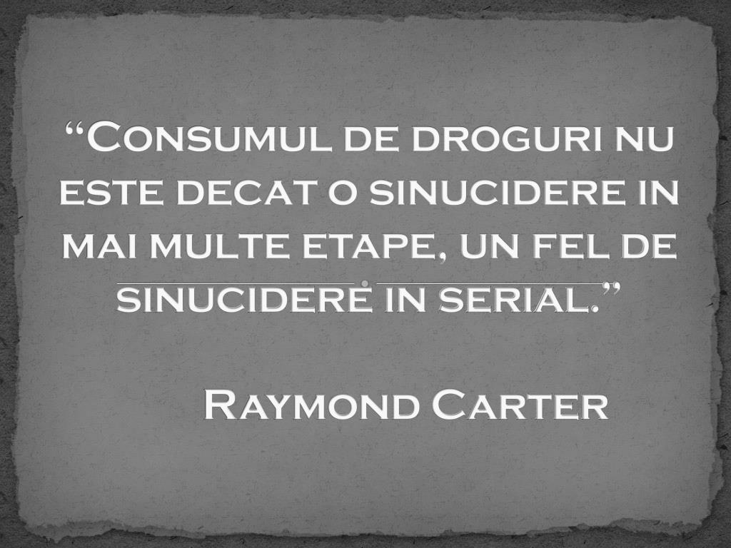 “Consumul de droguri nu este decat o sinucidere in mai multe etape, un fel de sinucidere in serial.” Raymond Carter