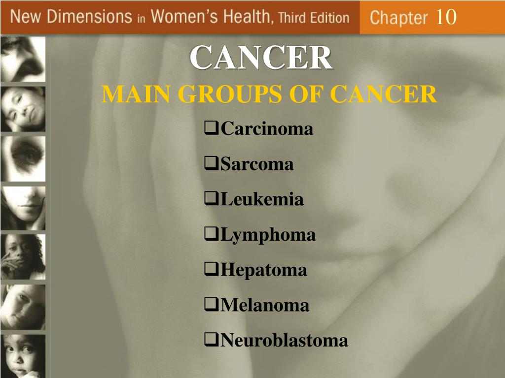 10 CANCER MAIN GROUPS OF CANCER • Carcinoma • Sarcoma • Leukemia • Lymphoma • Hepatoma • Melanoma • Neuroblastoma