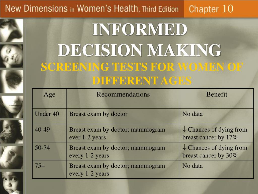 10 INFORMED DECISION MAKING SCREENING TESTS FOR WOMEN OF DIFFERENT AGES