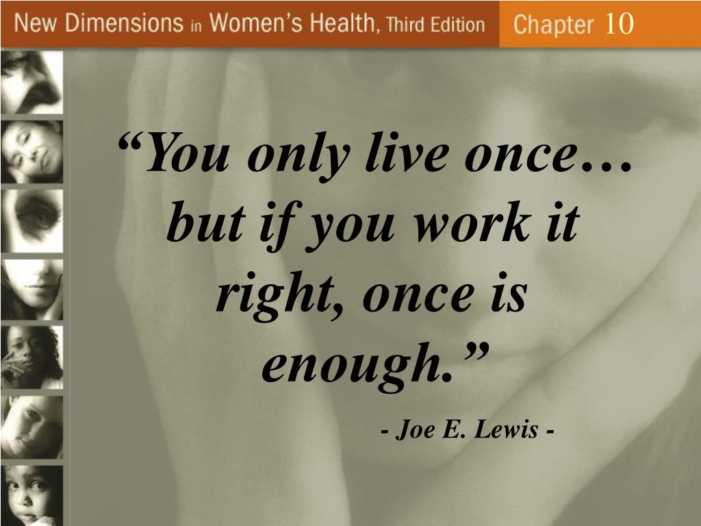 10 “You only live once… but if you work it right, once is enough.” - Joe E. Lewis -