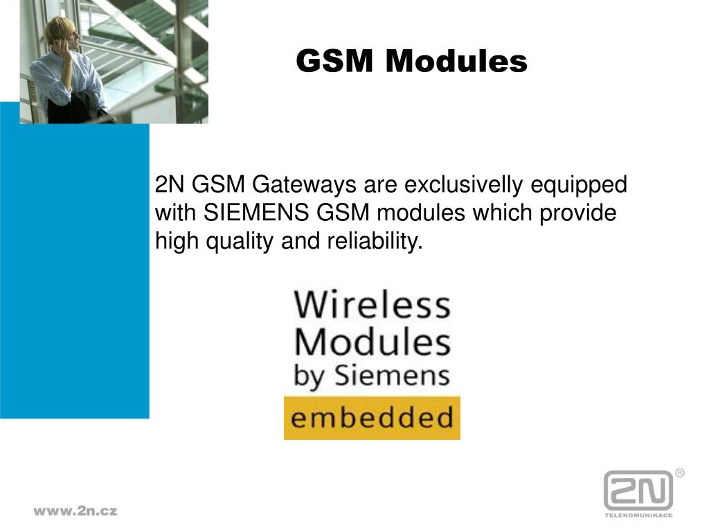GSM Modules 2N GSM Gateways are exclusivelly equipped with SIEMENS GSM modules which provide high quality and reliability.