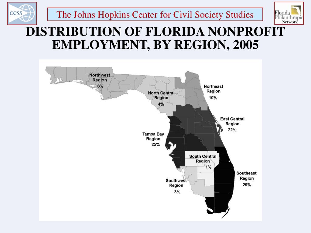 The Johns Hopkins Center for Civil Society Studies DISTRIBUTION OF FLORIDA NONPROFIT EMPLOYMENT, BY REGION, 2005