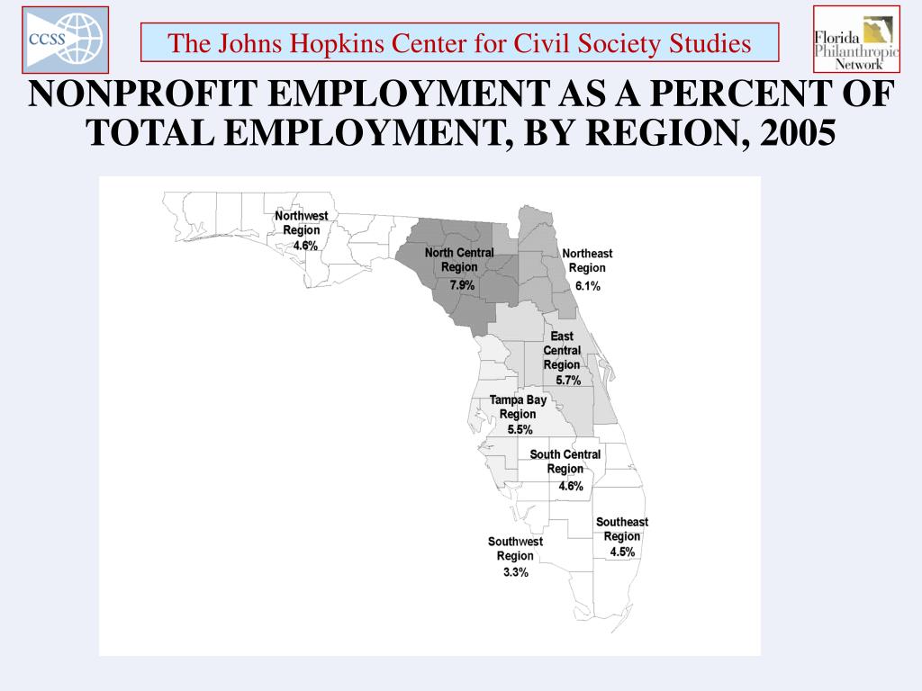 The Johns Hopkins Center for Civil Society Studies NONPROFIT EMPLOYMENT AS A PERCENT OF TOTAL EMPLOYMENT, BY REGION, 2005
