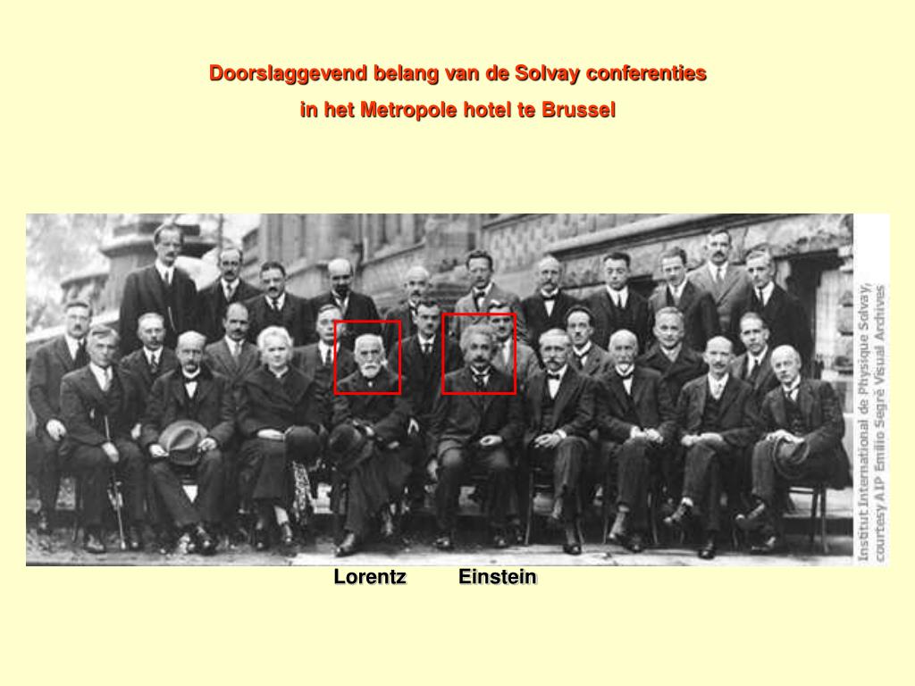 Doorslaggevend belang van de Solvay conferenties in het Metropole hotel te Brussel Lorentz Einstein