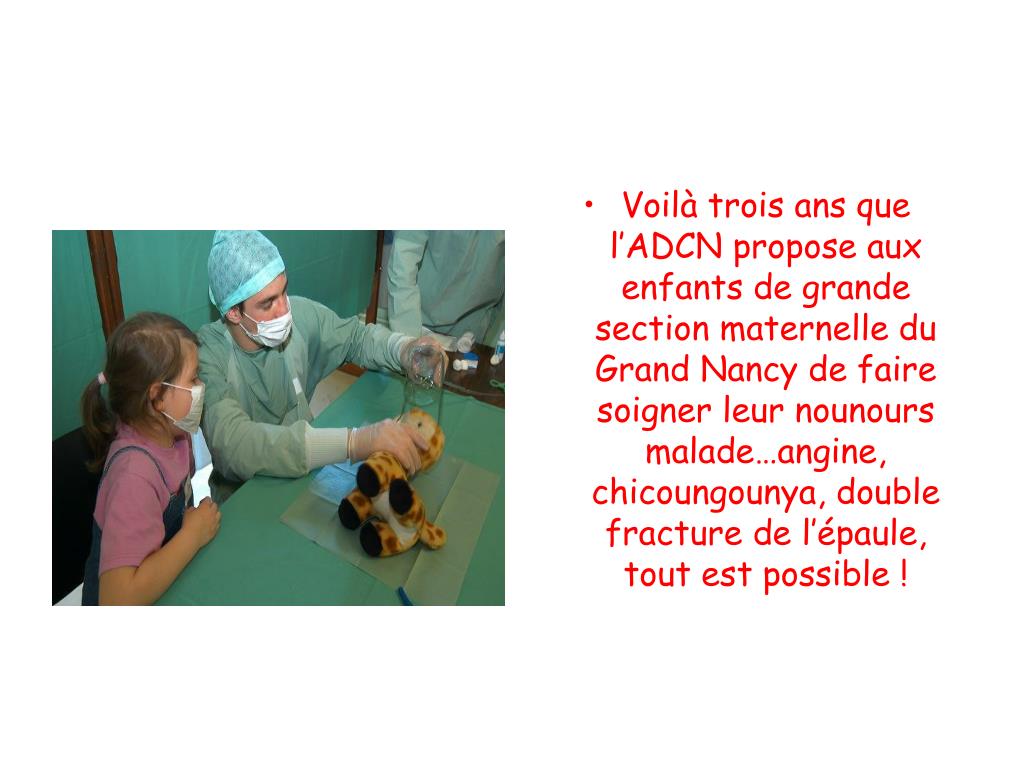 Hôpital Des Nounours 2007. Voilà trois ans que l’ADCN propose aux enfants de grande section maternelle du Grand Nancy de faire soigner leur nounours malade…angine, chicoungounya, double fracture de l’épaule, tout est possible !.