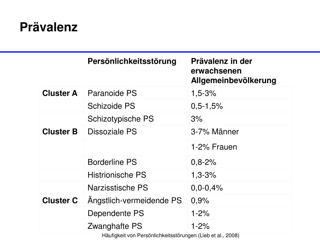 Prävalenz Häufigkeit von Persönlichkeitsstörungen (Lieb et al., 2008)