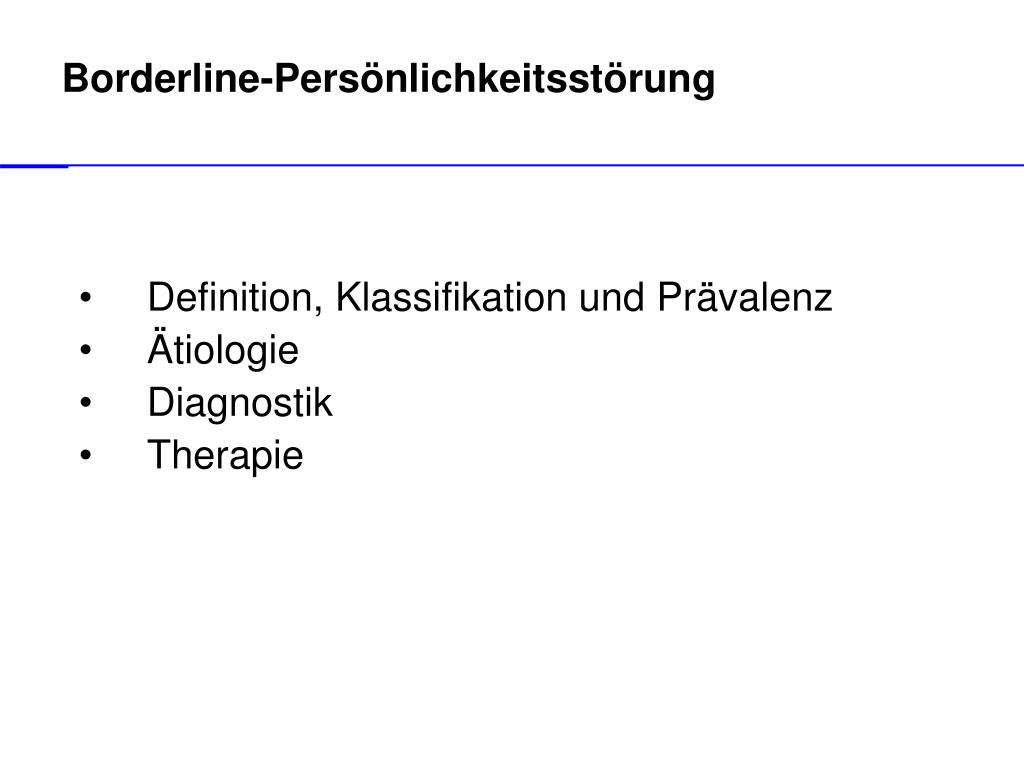 Borderline-Persönlichkeitsstörung • Definition, Klassifikation und Prävalenz • Ätiologie • Diagnostik • Therapie