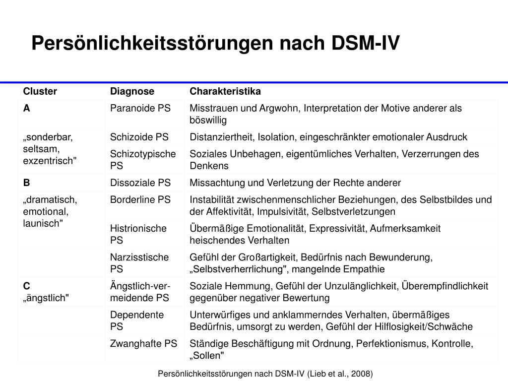 Klassifikation Persönlichkeitsstörungen in ICD-10 und DSM-IV (Lieb et al., 2008)