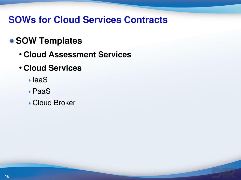 SOWs for Cloud Services Contracts • SOW Templates • Cloud Assessment Services • Cloud Services • IaaS • PaaS • Cloud Broker