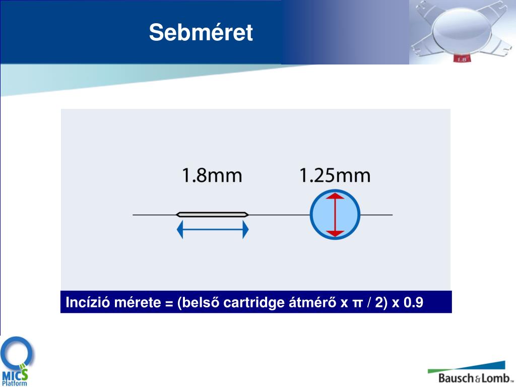 Sebméret Incízió mérete = (belső cartridge átmérő x π / 2) x 0.9