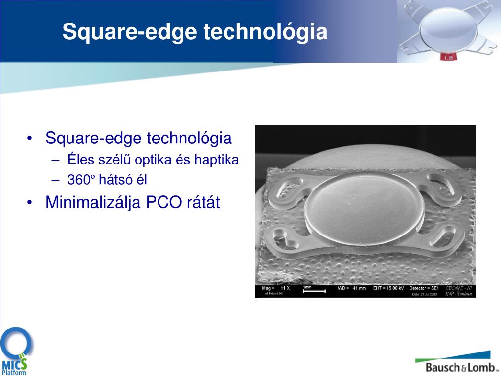 Square-edge technológia • Square-edge technológia • Éles szélű optika és haptika • 360ºhátsó él • Minimalizálja PCO rátát