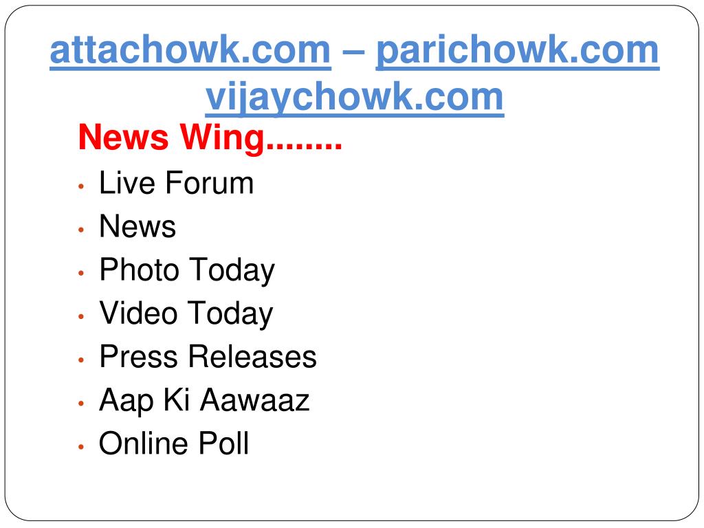 attachowk.com – parichowk.comvijaychowk.com News Wing........ • Live Forum • News • Photo Today • Video Today • Press Releases • AapKiAawaaz • Online Poll