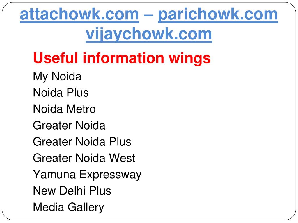 attachowk.com – parichowk.comvijaychowk.com Useful information wings My Noida Noida Plus Noida Metro Greater Noida Greater Noida Plus Greater Noida West Yamuna Expressway New Delhi Plus Media Gallery