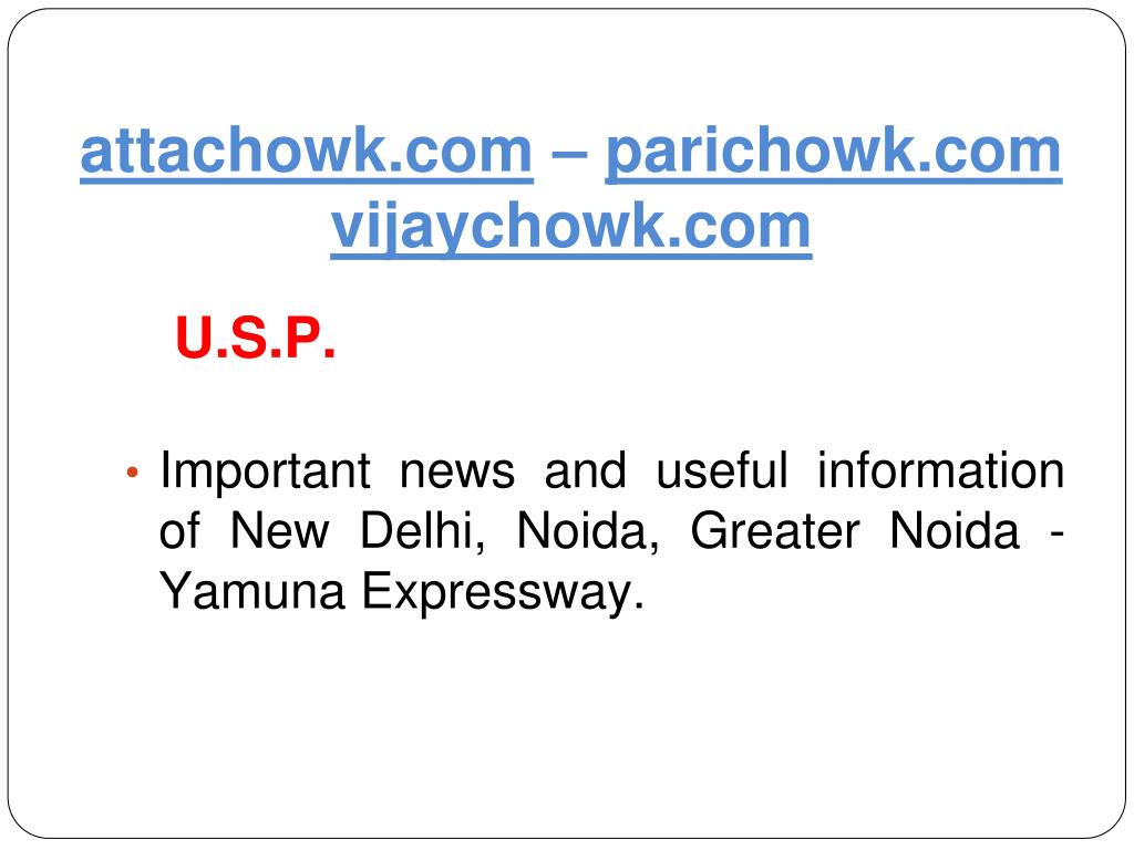 attachowk.com – parichowk.comvijaychowk.com U.S.P. • Important news and useful information of New Delhi, Noida, Greater Noida - Yamuna Expressway.