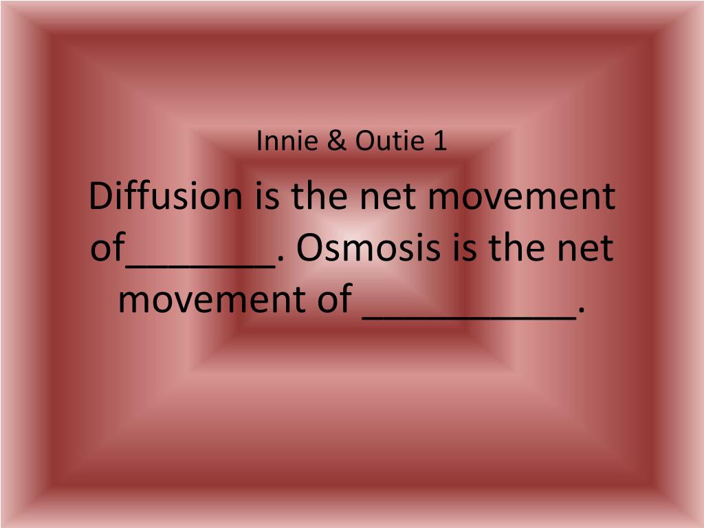 Diffusion is the net movement of_______. Osmosis is the net movement of __________. Innie & Outie 1