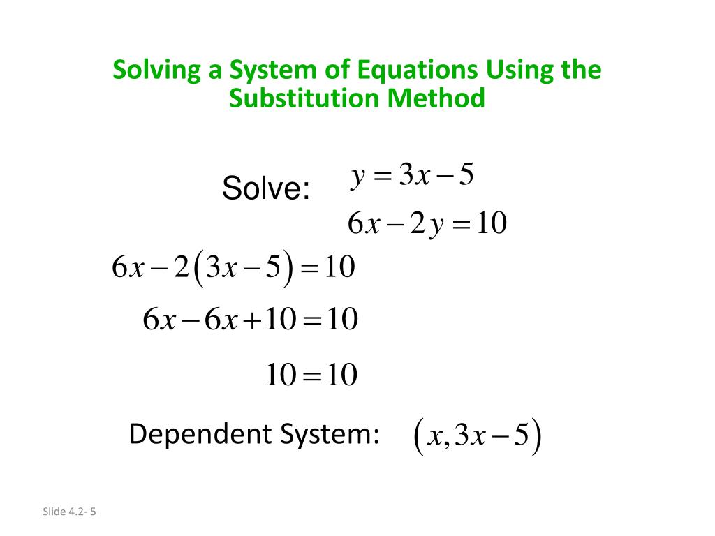 Solving a System of Equations Using the Substitution Method Dependent System: Solve: