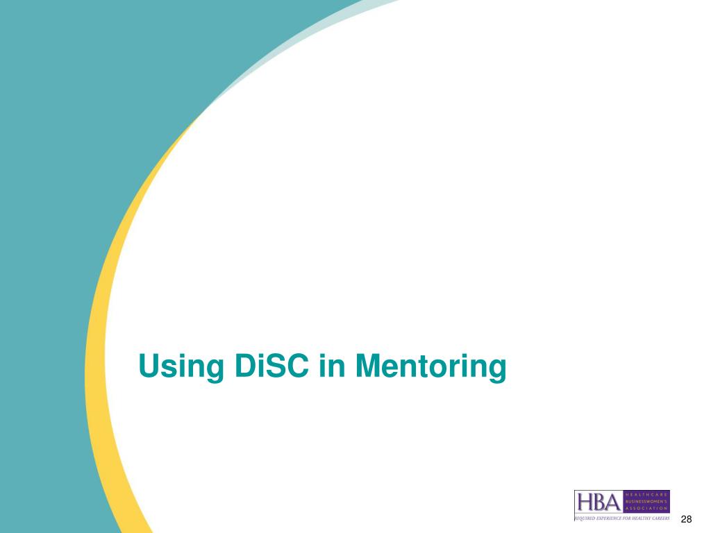 HBA Mentor Training Overview • The HBA Mentor Training program is designed to give volunteer mentors information & guidance • Offer a ‘road map’ for novice & experienced mentors • The training program is NOT to be viewed as concrete rules of engagement, rather as flexible guidelines and best practices • Resources and tools provided: • Mentor Quick Start Guide • Program Training Guide • Virtual Notebook • DiSC assessments