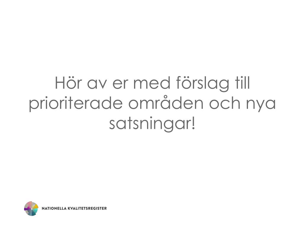 agenda • Aktuella frågor • Utredningen om Rätt information i vård och omsorg • Presentera resultatdata för patienterna • Åtgärdsförslagen inom den internationella strategin • Omvårdnadsvariabler i kvalitetsregister