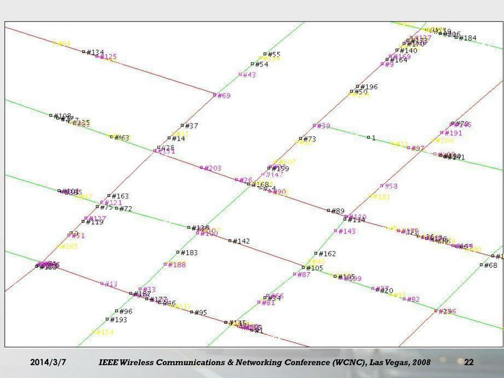 Map in simulation • Centered at • Long: -84877562 • Lat: 35162102 • Size • Width: 2000m • Length: 2000m IEEE Wireless Communications & Networking Conference (WCNC), Las Vegas, 2008
