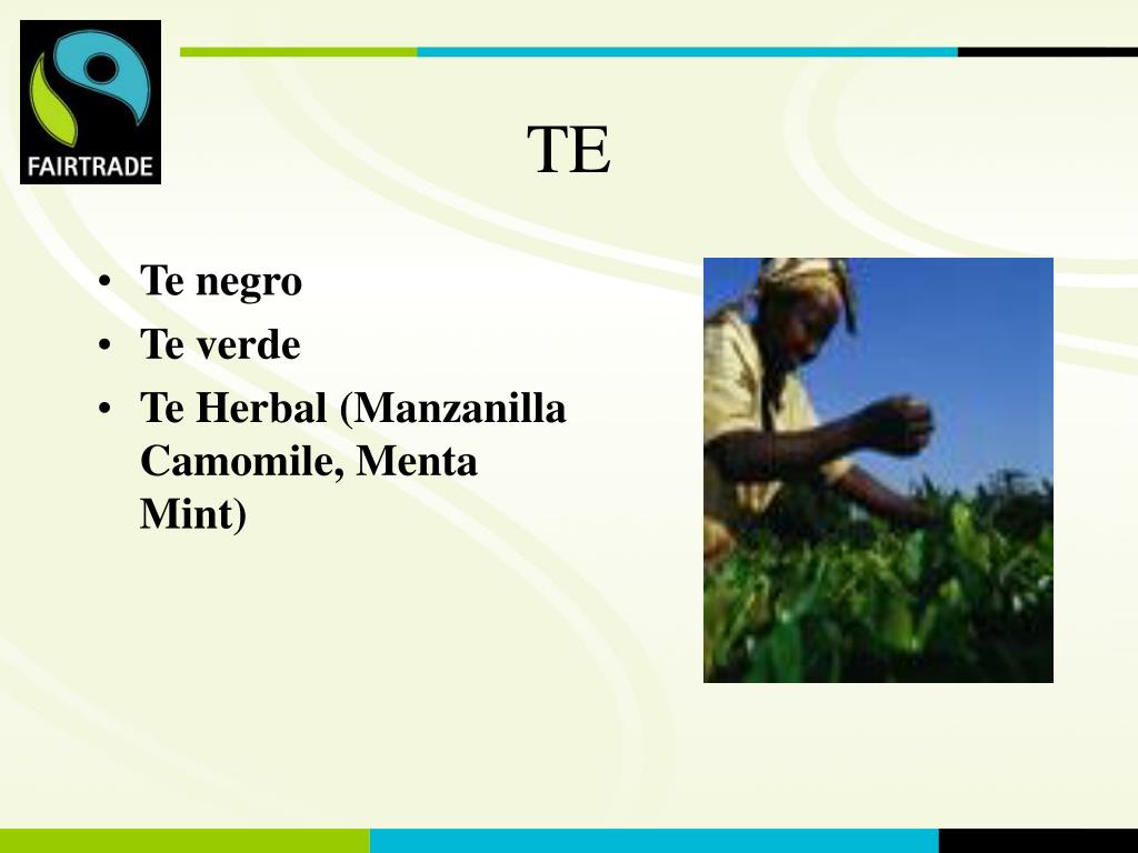TE • Te negro • Te verde • Te Herbal (Manzanilla Camomile, Menta Mint)